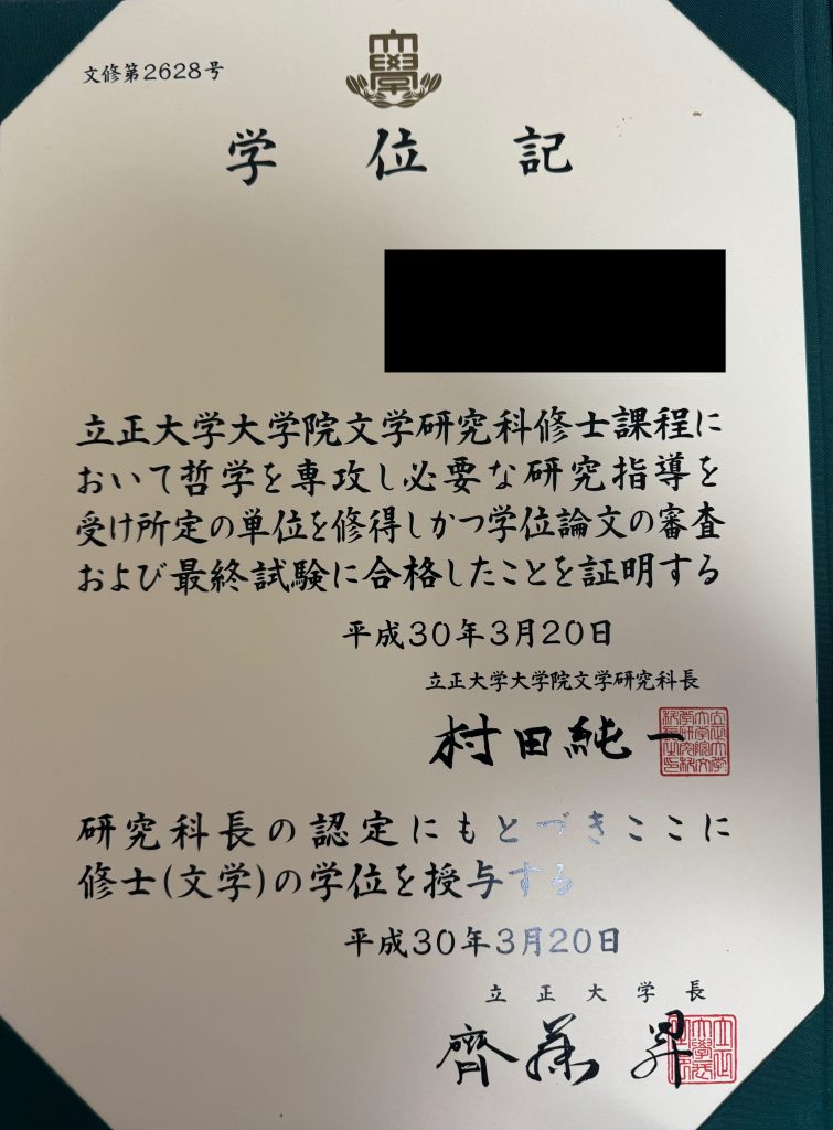 立正大学大学院を修了しています。哲学専攻です。