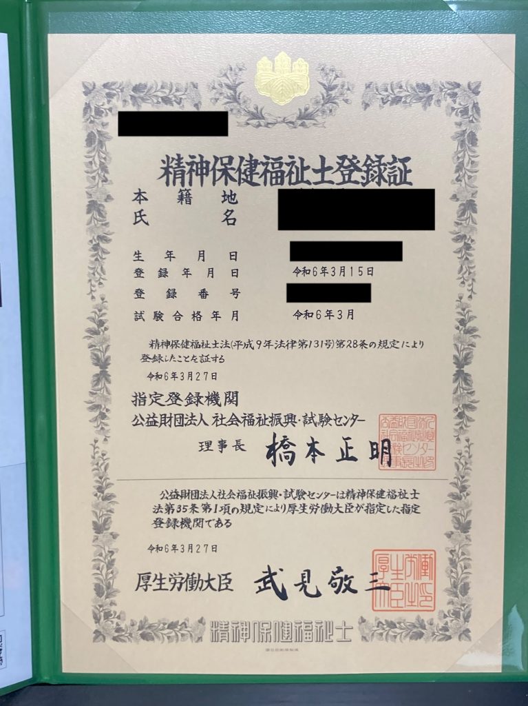 国家資格の精神保健福祉士を有しています。
